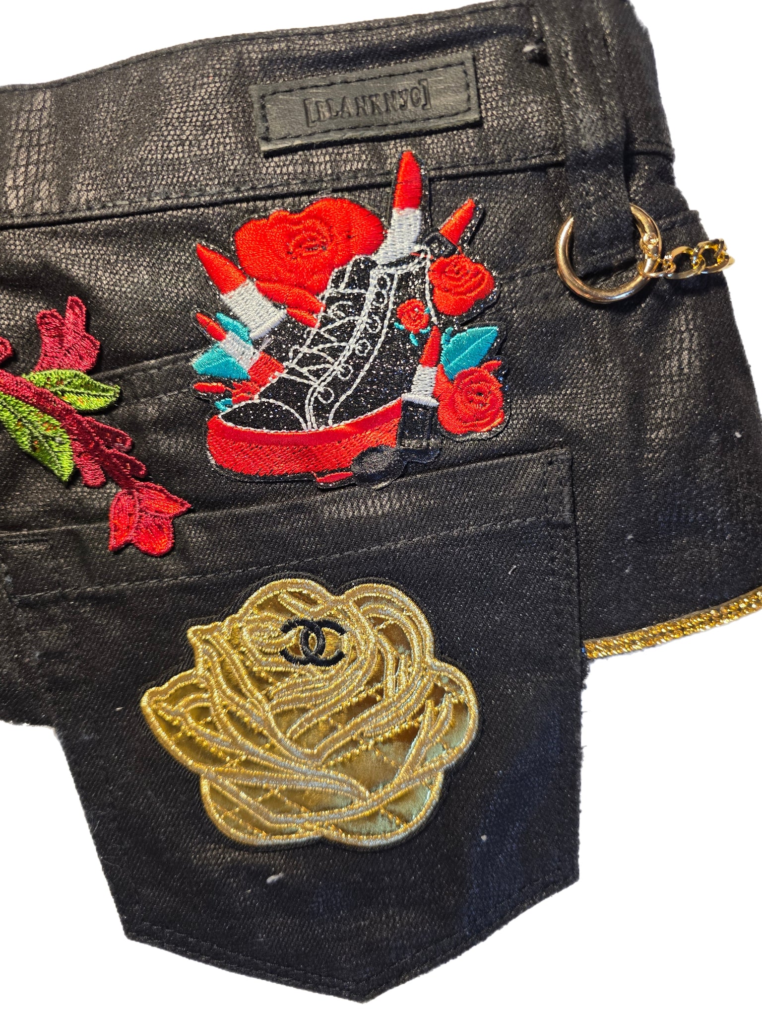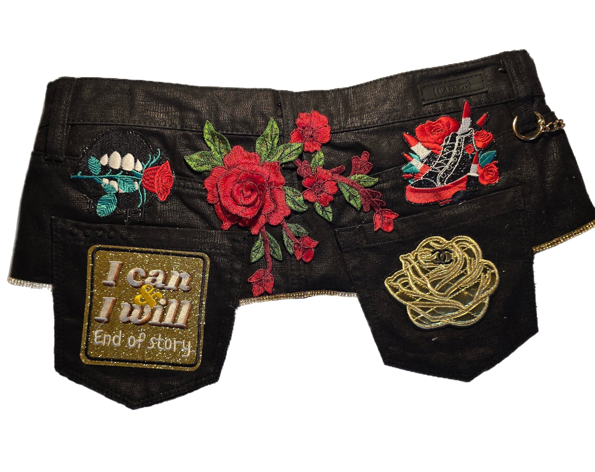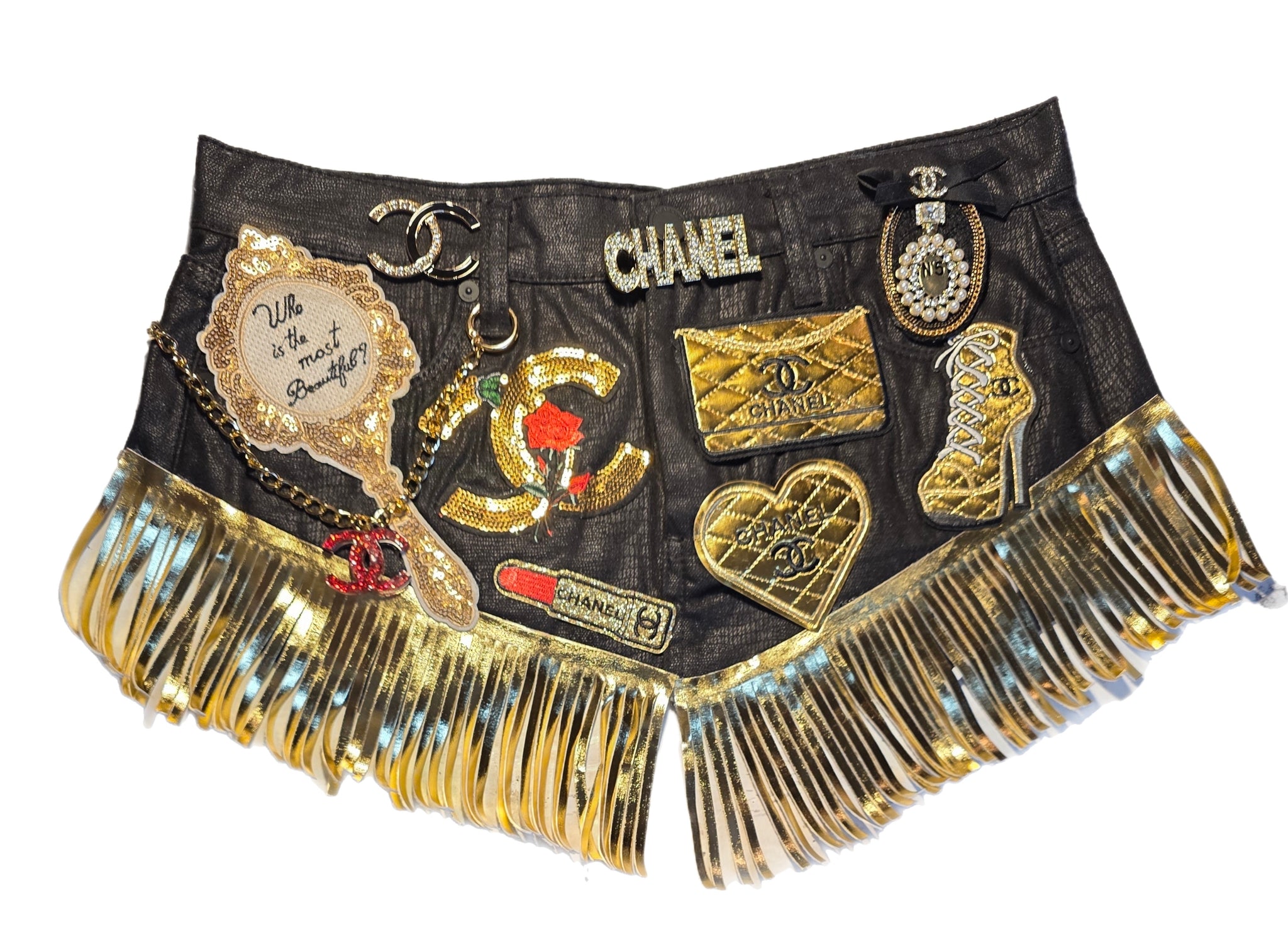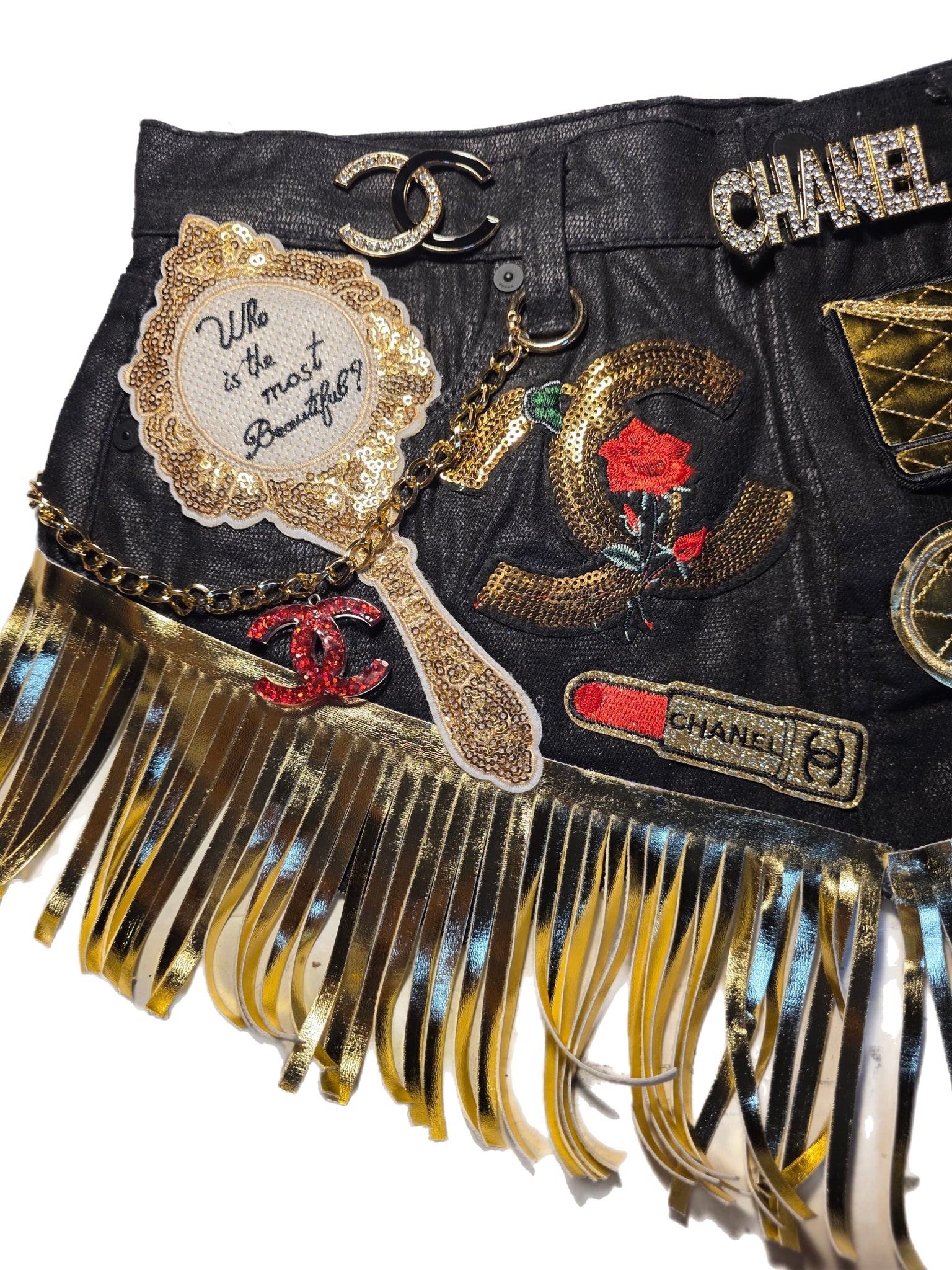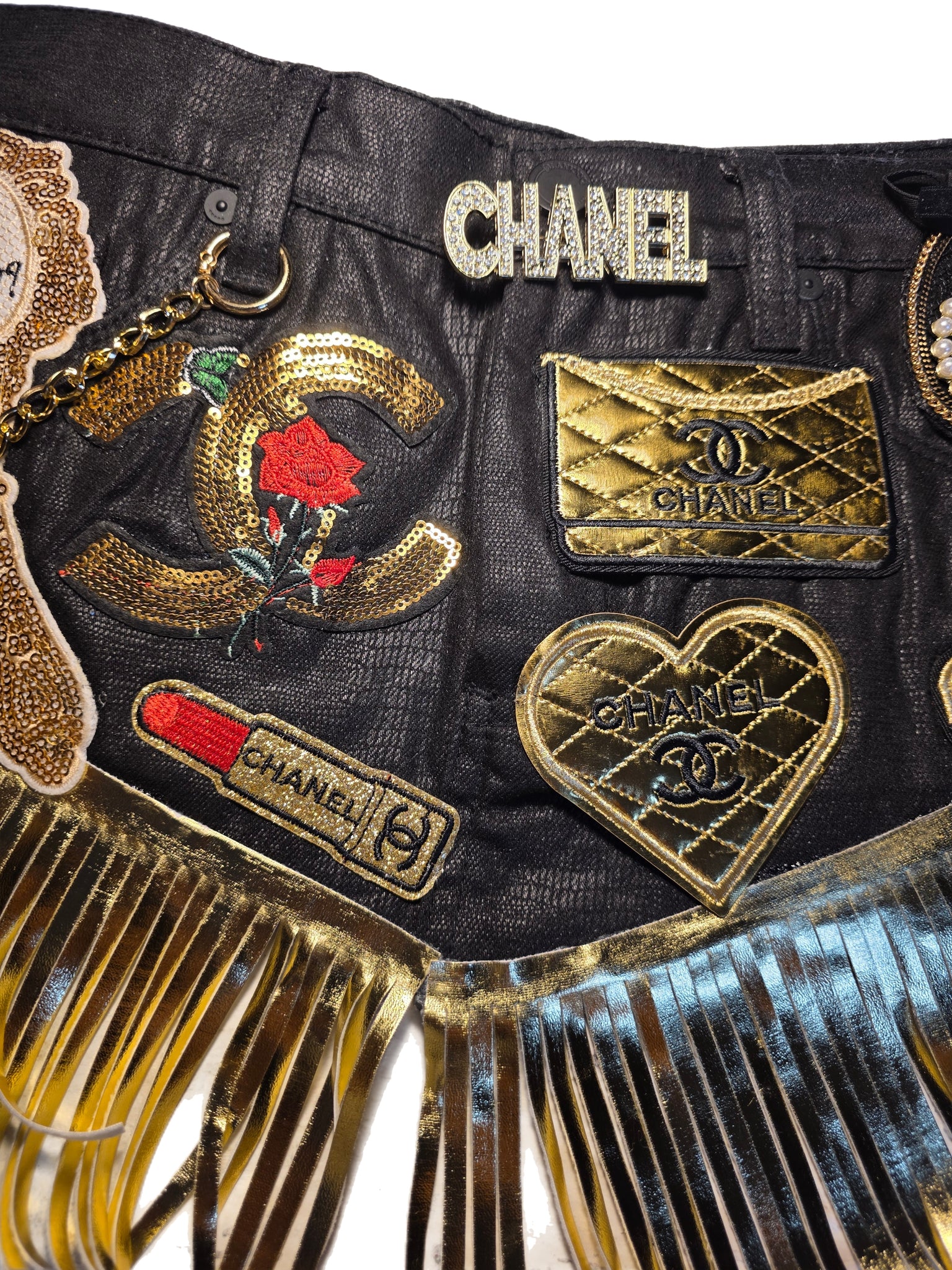 Black Faux leather with fringe details. Size Small